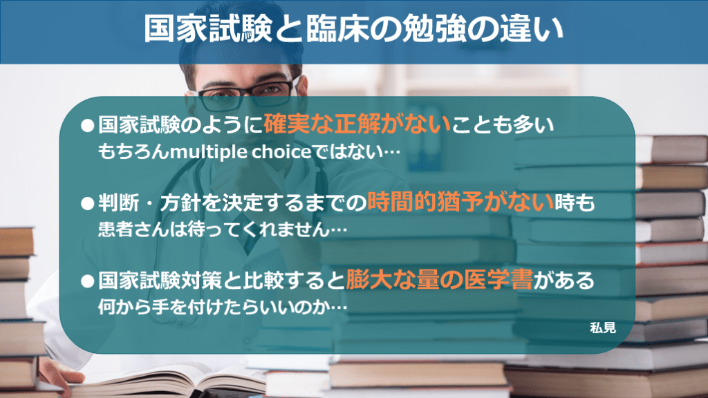 #9. 国家試験と臨床の勉強の違い ●国家試験のように確実な正解がないことも多い