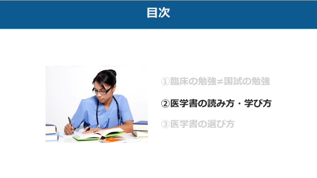 #3. 目次 ①臨床の勉強≠国試の勉強