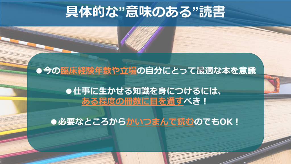 #13. 具体的な”意味のある”読書 ●今の臨床経験年数や立場の自分にとって最適な本を意識