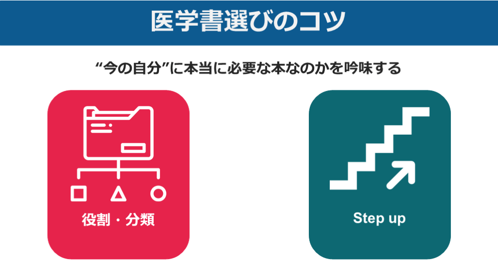 #20. 医学書選びのコツ “今の自分”に本当に必要な本なのかを吟味する 役割・分類 Step up