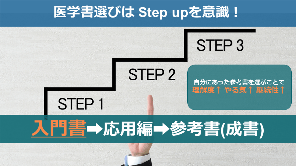 #22. 医学書選びは Step upを意識! 入門書➡応用編➡参考書(成書) 自分にあった参考書を選ぶことで