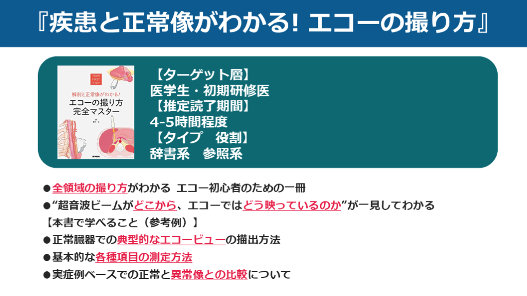 #33. 『疾患と正常像がわかる! エコーの撮り方』 ●全領域の撮り方がわかる エコー初心者のための一冊