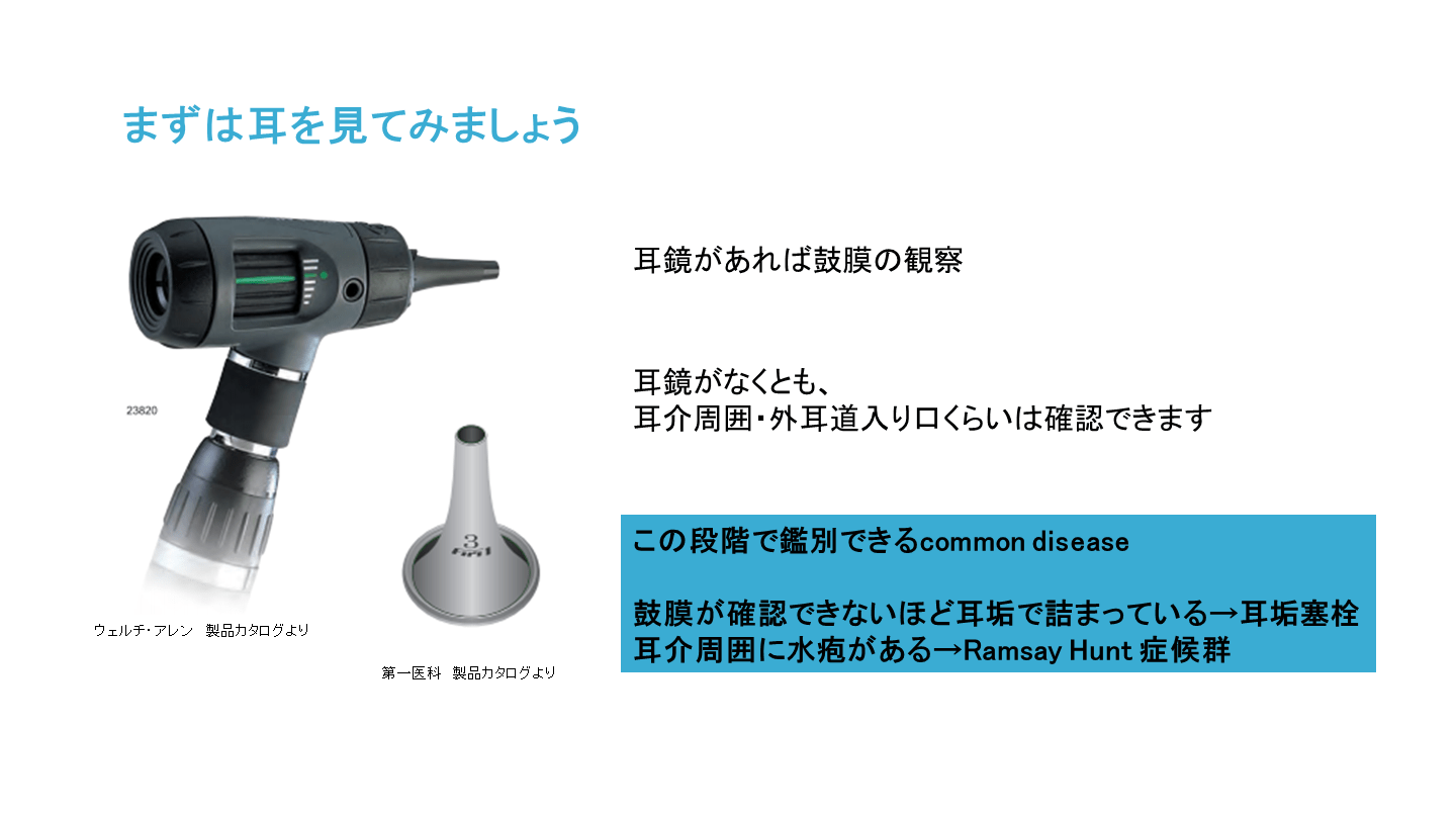 #3. まずは耳を見てみましょう 耳鏡があれば鼓膜の観察 耳鏡がなくとも、