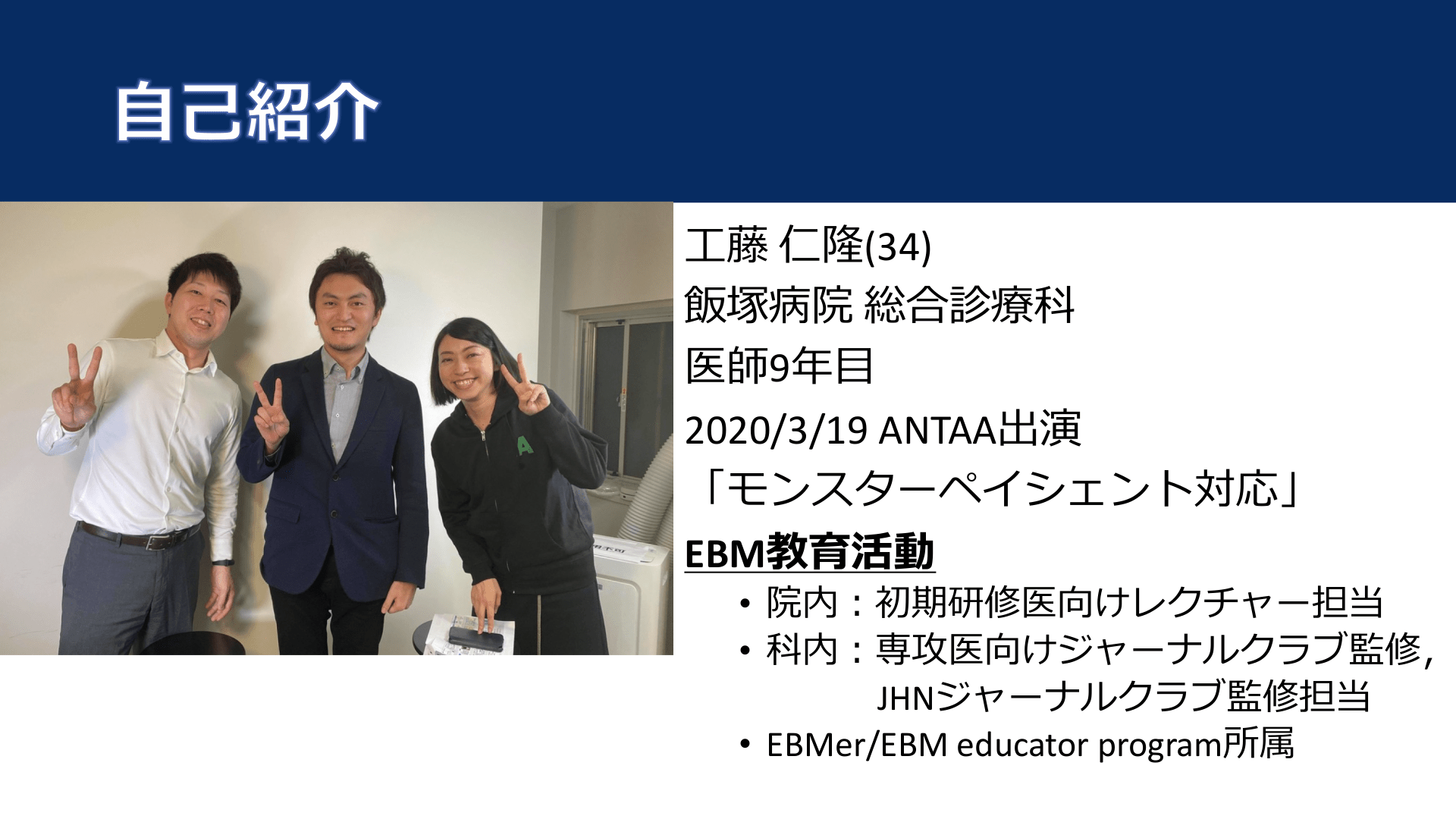 今回は飯塚病院の工藤先生に明日から実践できるEBMについて、ポイントを押さえたわかりやすい解説をしていただきます!