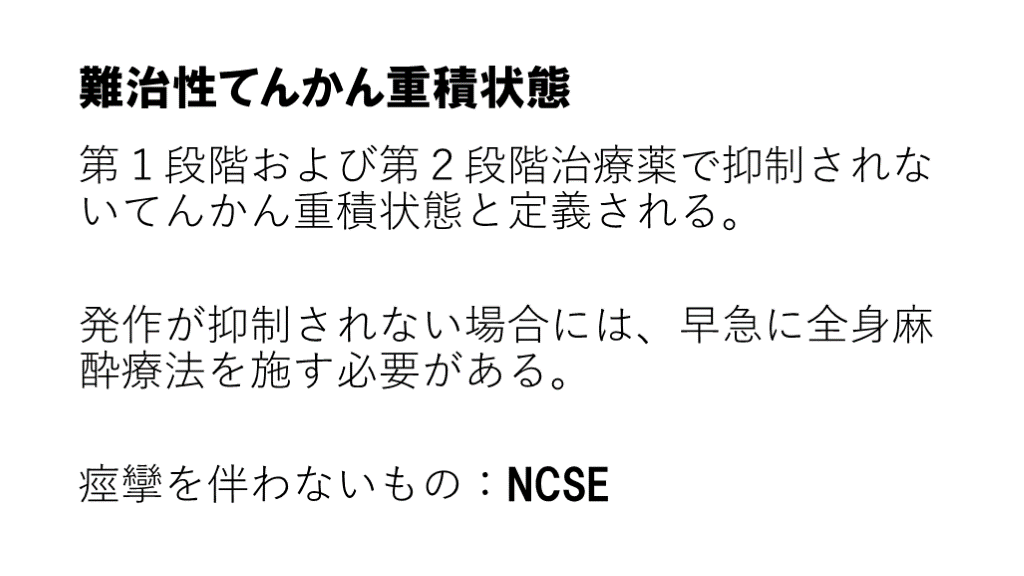 #8. 難治性てんかん重積状態 第1段階および第2段階治療薬で抑制されないてんかん重積状態と定義される。