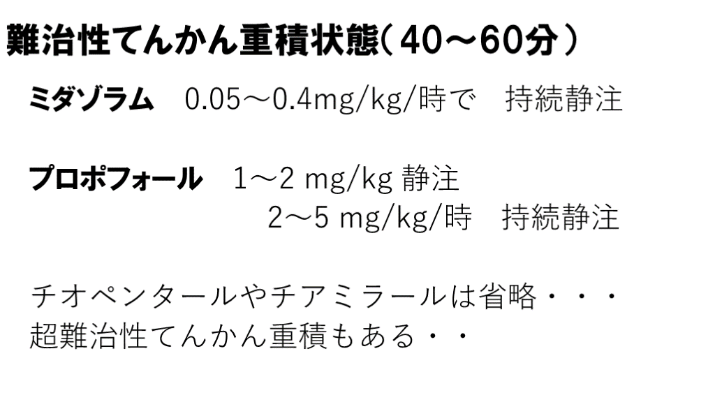 #13. 難治性てんかん重積状態(40〜60分) ミダゾラム 0.05〜0.4mg/kg/時で 持続静注