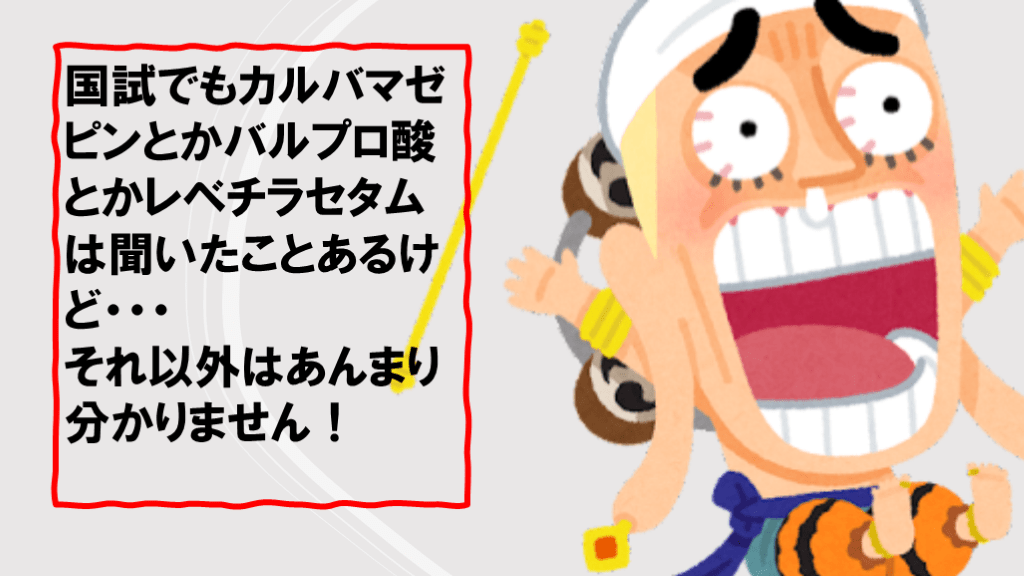 #20. 国試でもカルバマゼピンとかバルプロ酸とかレベチラセタムは聞いたことあるけど・・・