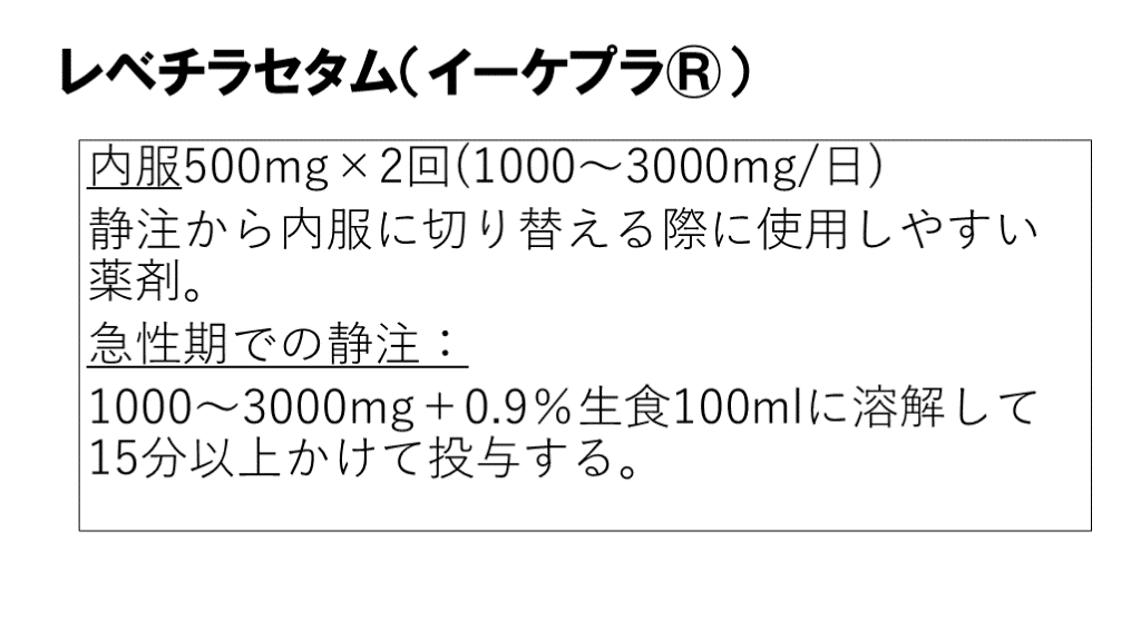 #21. レベチラセタム(イーケプラ®︎) 内服500mg×2回(1000〜3000mg/日)