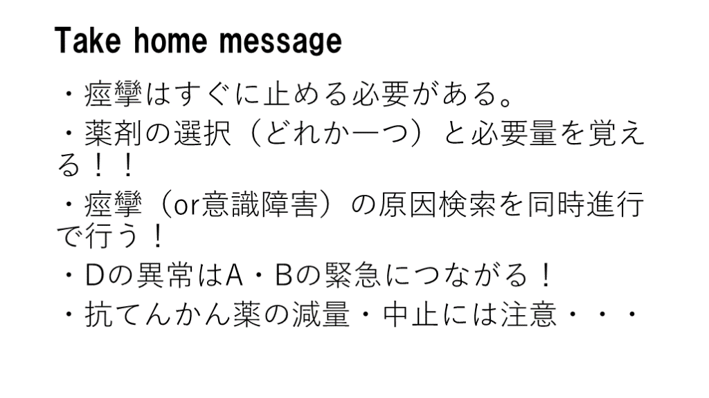 #26. Take home message ・痙攣はすぐに止める必要がある。