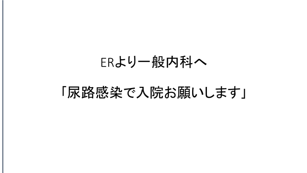 #2. ERより一般内科へ「尿路感染で入院お願いします」