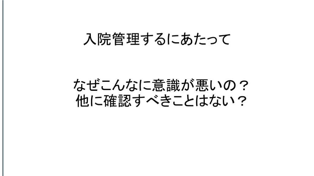 #13. なぜこんなに意識が悪いの?他に確認すべきことはない? 入院管理するにあたって
