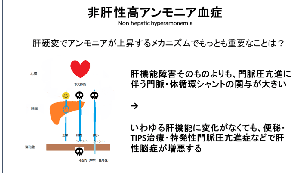 いわゆる肝機能に変化がなくても、便秘・TIPS治療・特発性門脈圧亢進症などで肝性脳症が増悪する