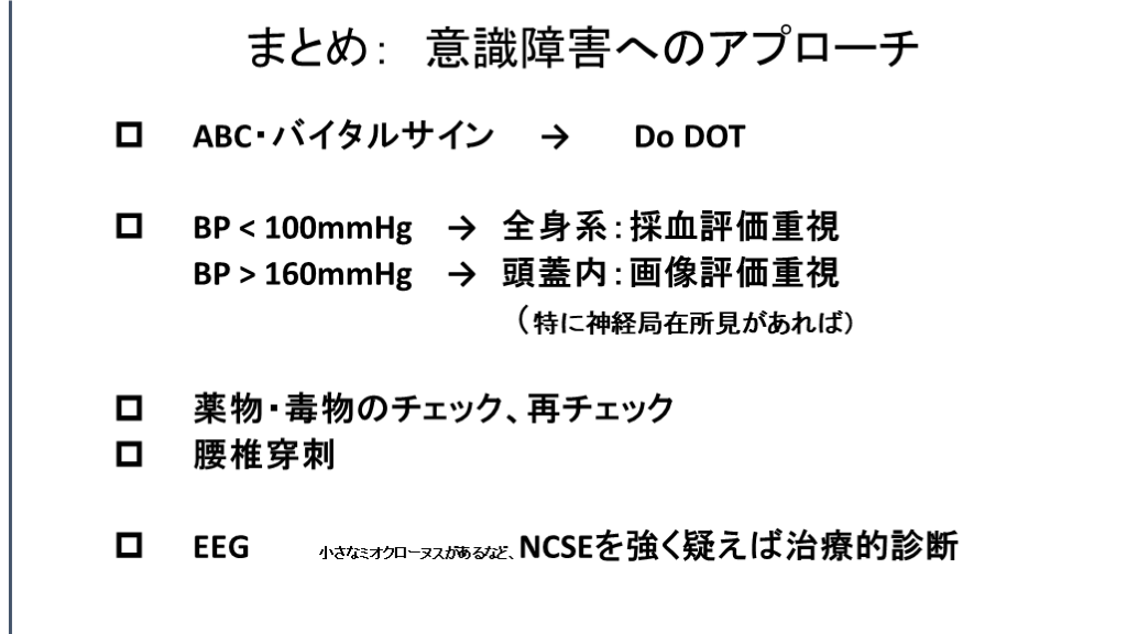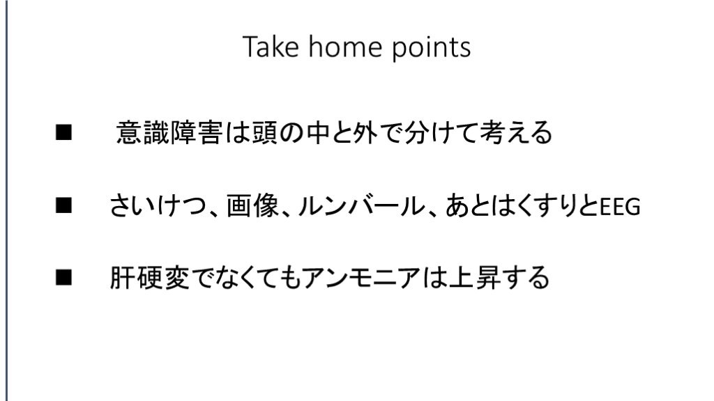 #39. Take home points 意識障害は頭の中と外で分けて考える