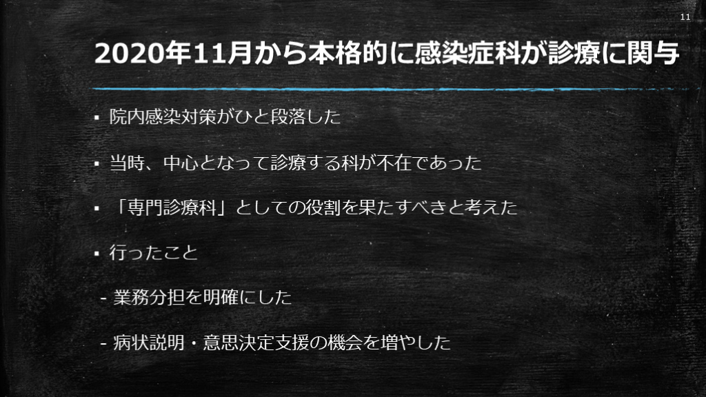 #11. 2020年11月から本格的に感染症科が診療に関与 院内感染対策がひと段落した