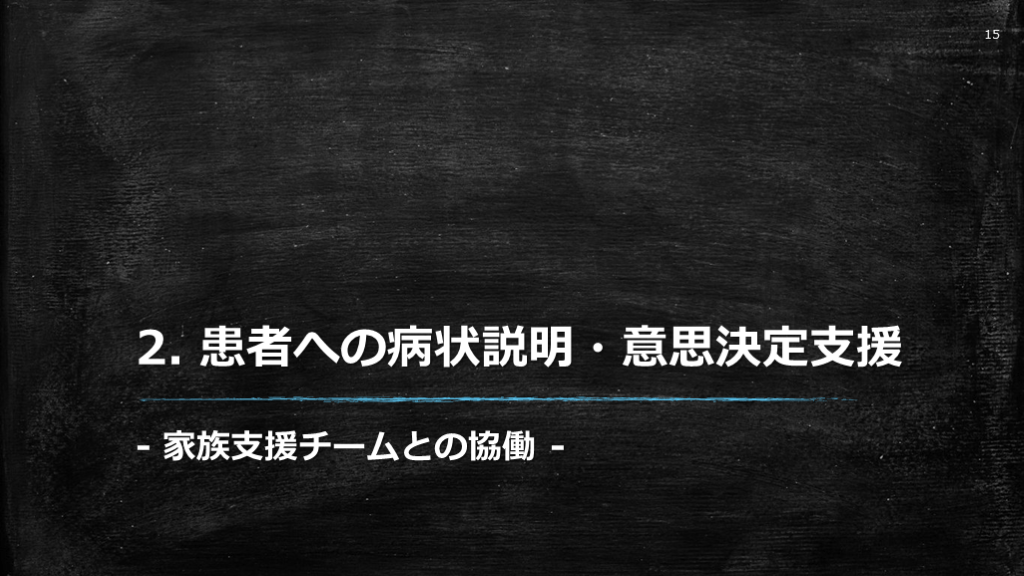 #15. 2. 患者への病状説明・意思決定支援 - 家族支援チームとの協働 - 15