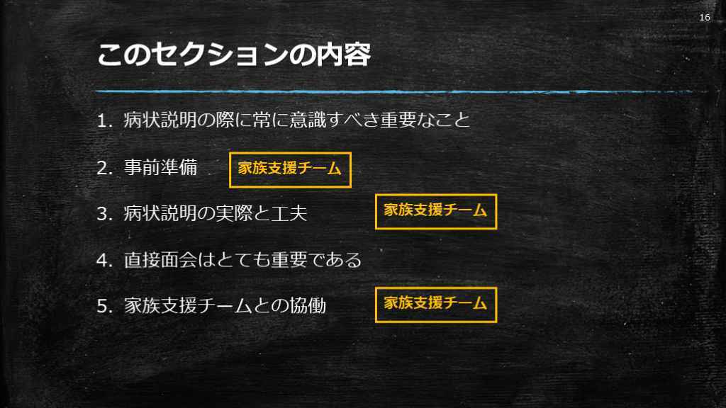 #16. このセクションの内容 病状説明の際に常に意識すべき重要なこと