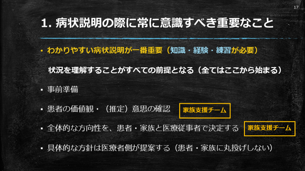 #17. 1. 病状説明の際に常に意識すべき重要なこと わかりやすい病状説明が一番重要(知識・経験・練習が必要)