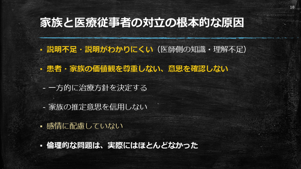 #18. 家族と医療従事者の対立の根本的な原因 説明不足・説明がわかりにくい(医師側の知識・理解不足)