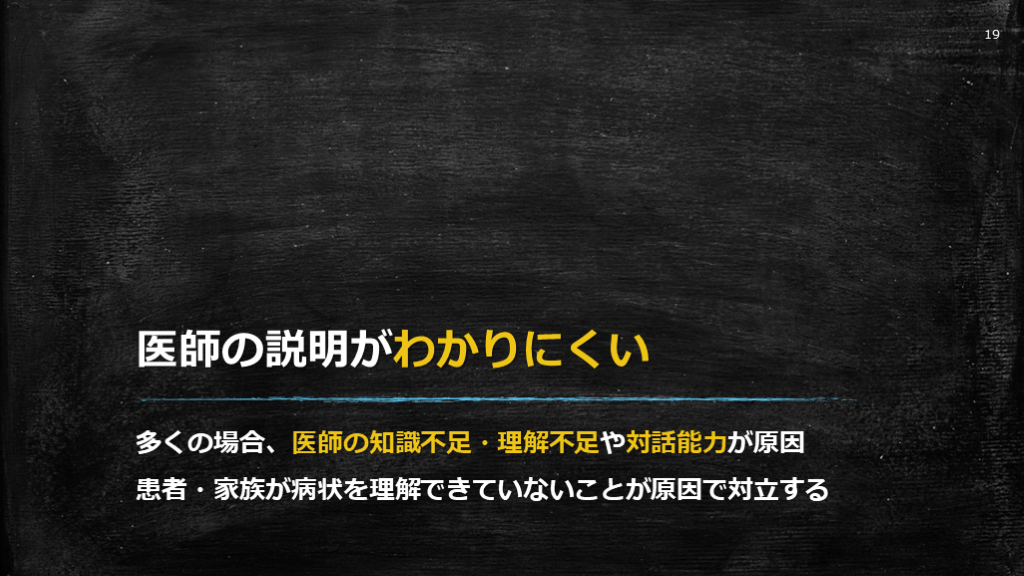 #19. 医師の説明がわかりにくい 多くの場合、医師の知識不足・理解不足や対話能力が原因