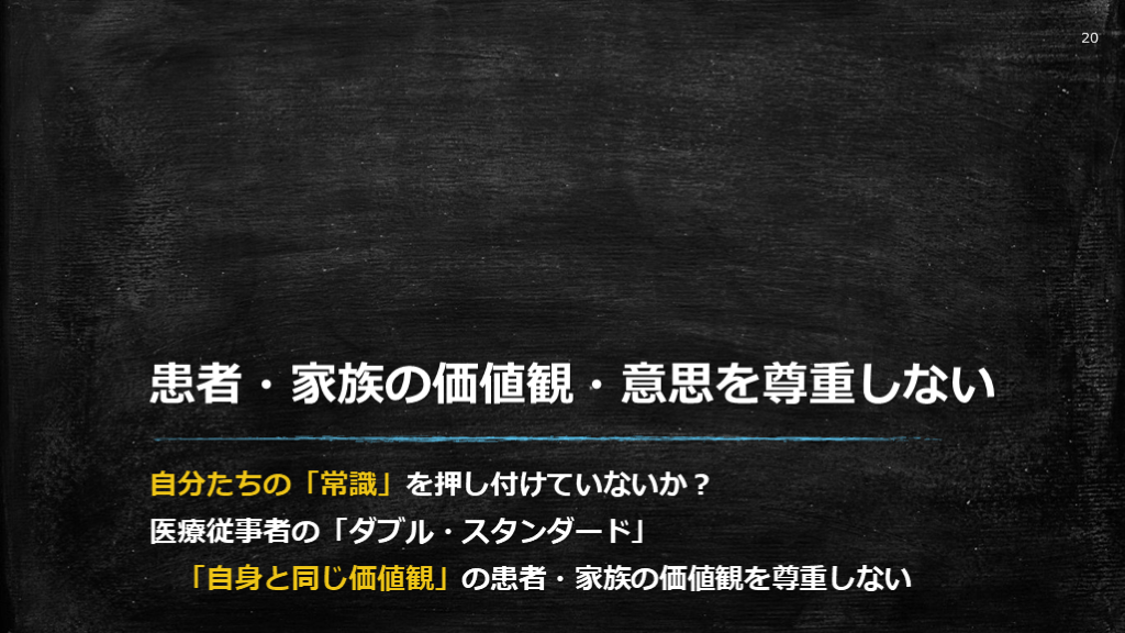 #20. 患者・家族の価値観・意思を尊重しない 自分たちの「常識」を押し付けていないか?