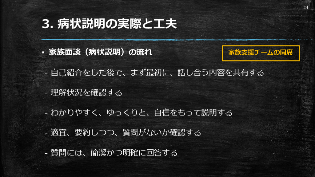 #24. 3. 病状説明の実際と工夫 家族面談(病状説明)の流れ
