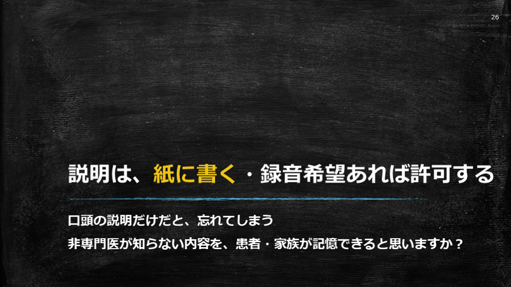 #26. 説明は、紙に書く・録音希望あれば許可する 口頭の説明だけだと、忘れてしまう