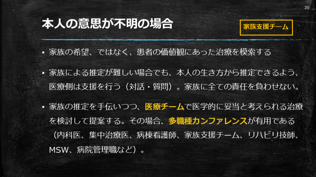 #30. 本人の意思が不明の場合 家族の希望、ではなく、患者の価値観にあった治療を模索する