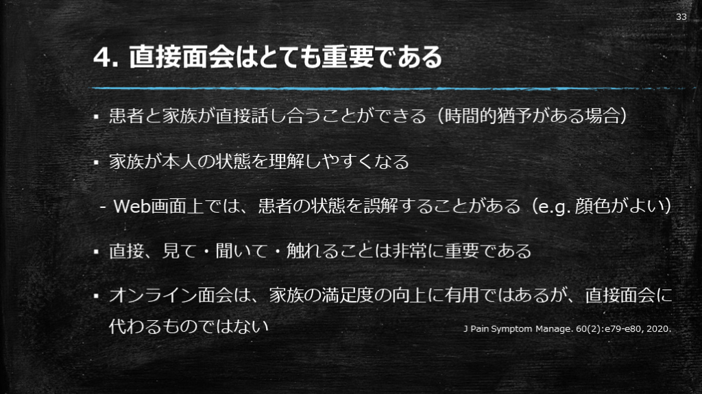 #33. 4. 直接面会はとても重要である 患者と家族が直接話し合うことができる(時間的猶予がある場合)