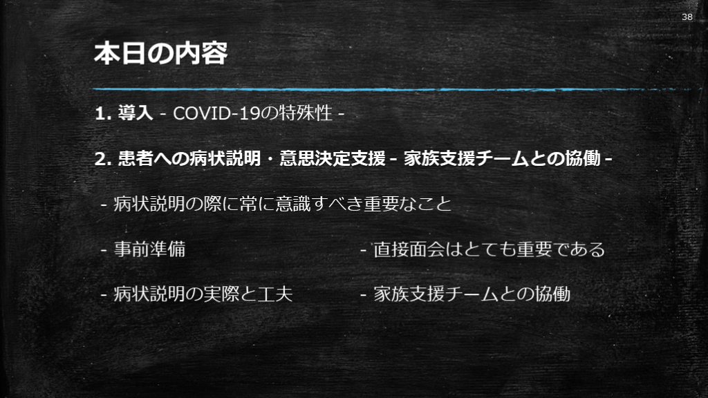 - 病状説明の実際と工夫 - 家族支援チームとの協働 38