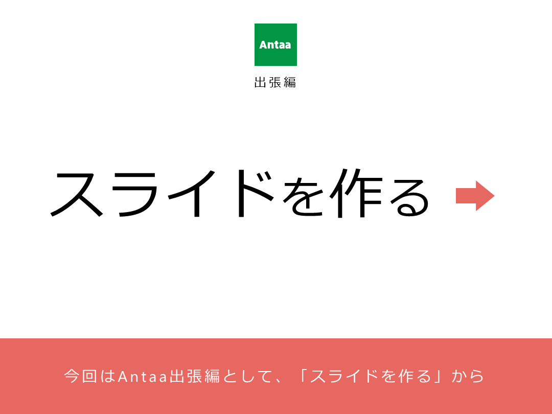 #4. 今回はAntaa出張編として、「スライドを作る」から スライドを作る 出張編