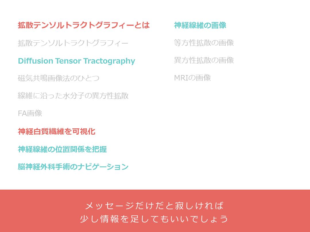 #32. このスライドの場合、情報の重みがほぼ並列のため