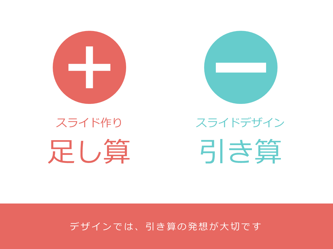 #18. デザインでは、引き算の発想が大切です スライド作り 足し算 スライドデザイン 引き算