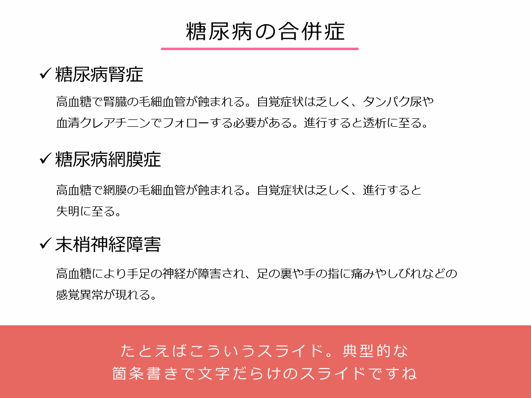 メッセージなので、それだけが伝われば十分です 糖尿病の合併症 糖尿病