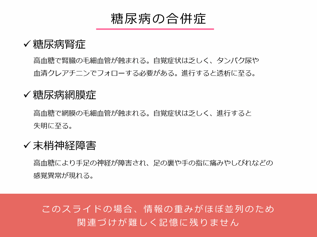 記憶の関連づけがしやすくなります 糖尿病の合併症 糖尿病