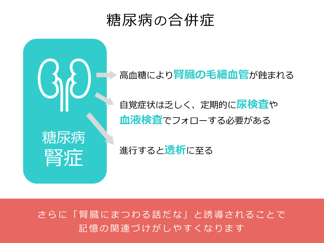 関連づけが難しく記憶に残りません 糖尿病の合併症 糖尿病腎症