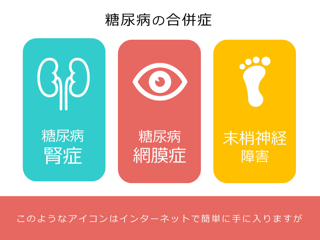 #36. このようなアイコンはインターネットで簡単に手に入りますが 糖尿病の合併症 糖尿病