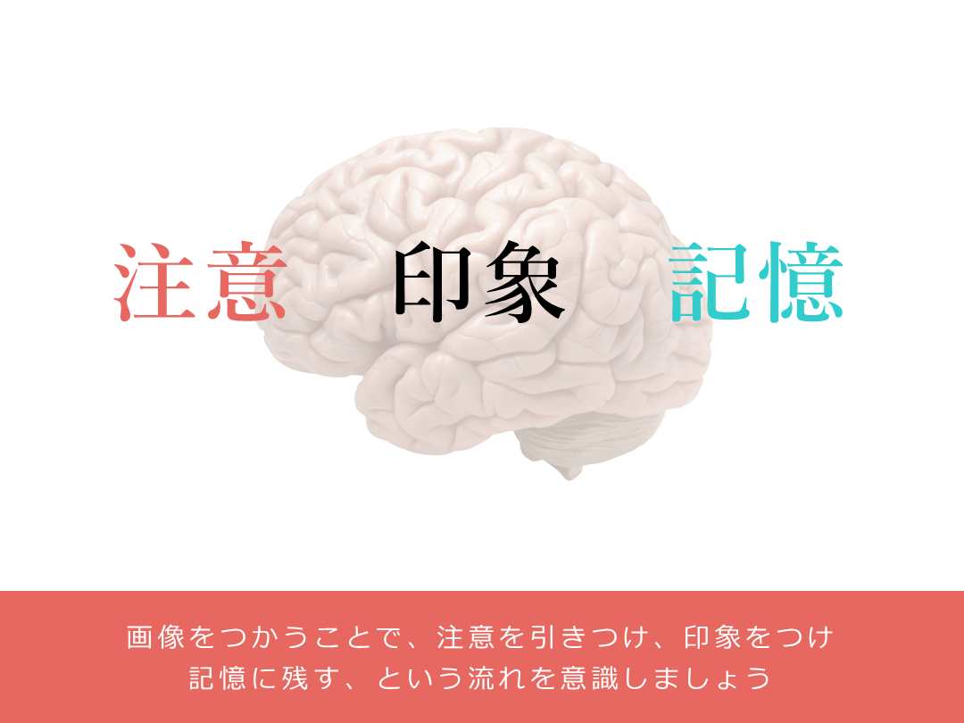 記憶に残す、という流れを意識しましょう 注意 印象 記憶