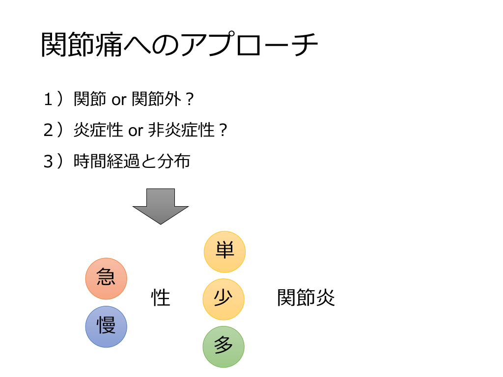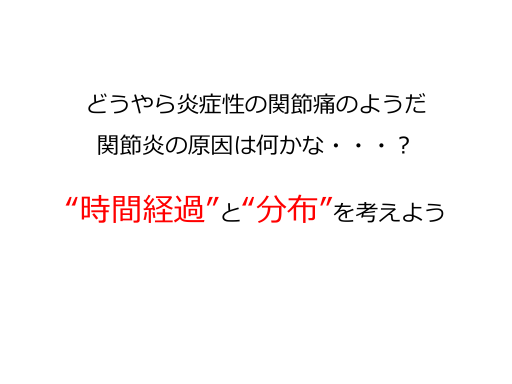 #21. どうやら炎症性の関節痛のようだ 関節炎の原因は何かな・・・? “時間経過”と“分布”を考えよう