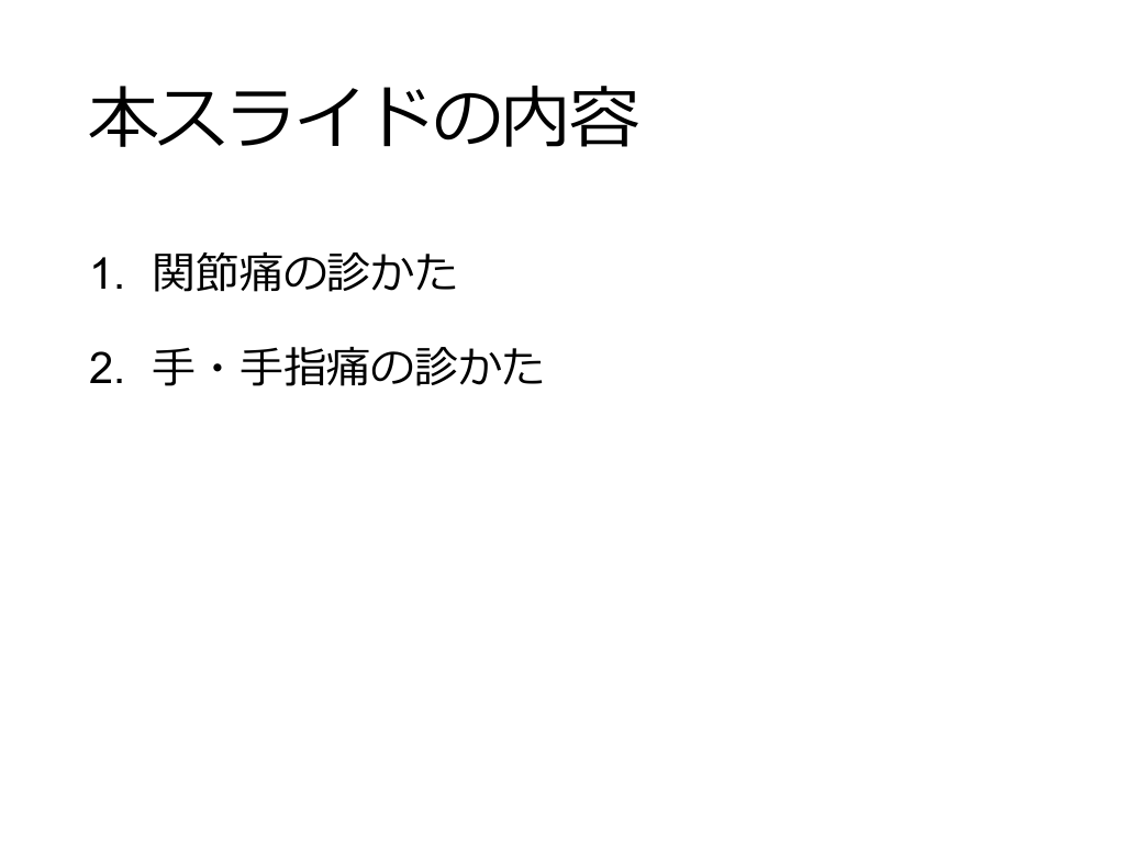 #4. 本スライドの内容 1. 関節痛の診かた 2. 手・手指痛の診かた