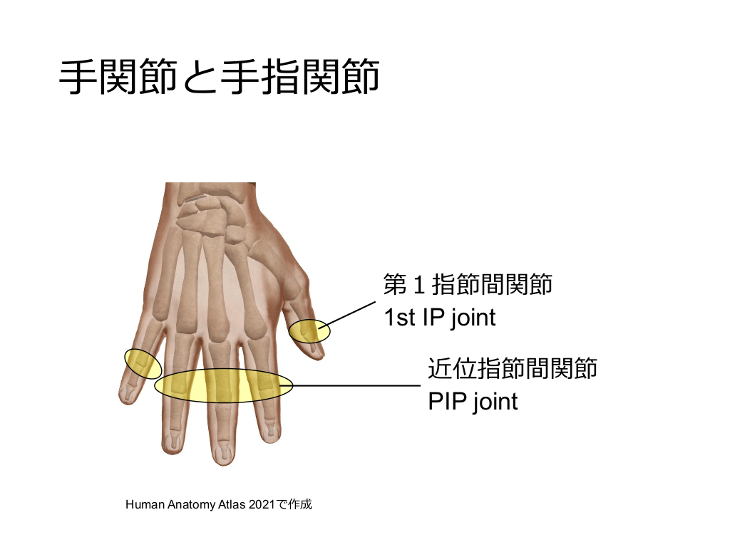 #47. 手関節と手指関節 第1指節間関節 1st IP joint 近位指節間関節 PIP joint Human Anatomy Atlas 2021で作成