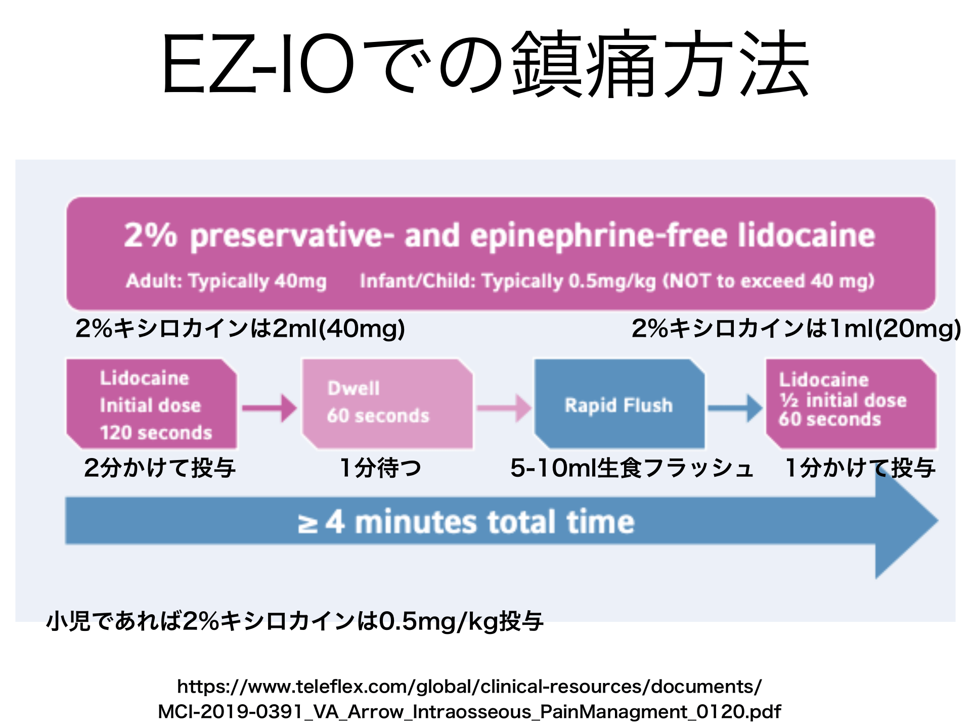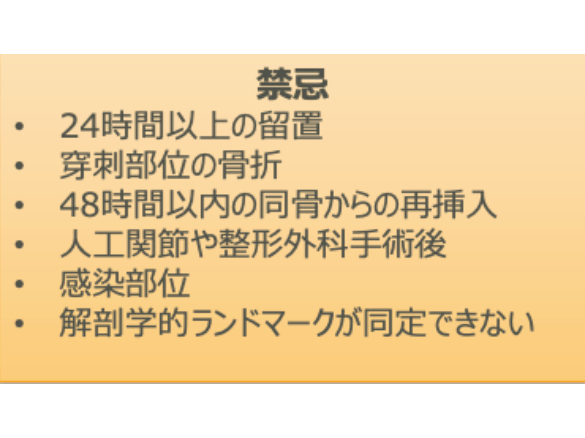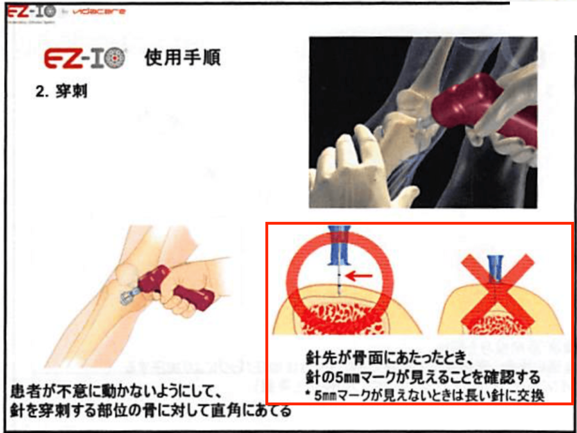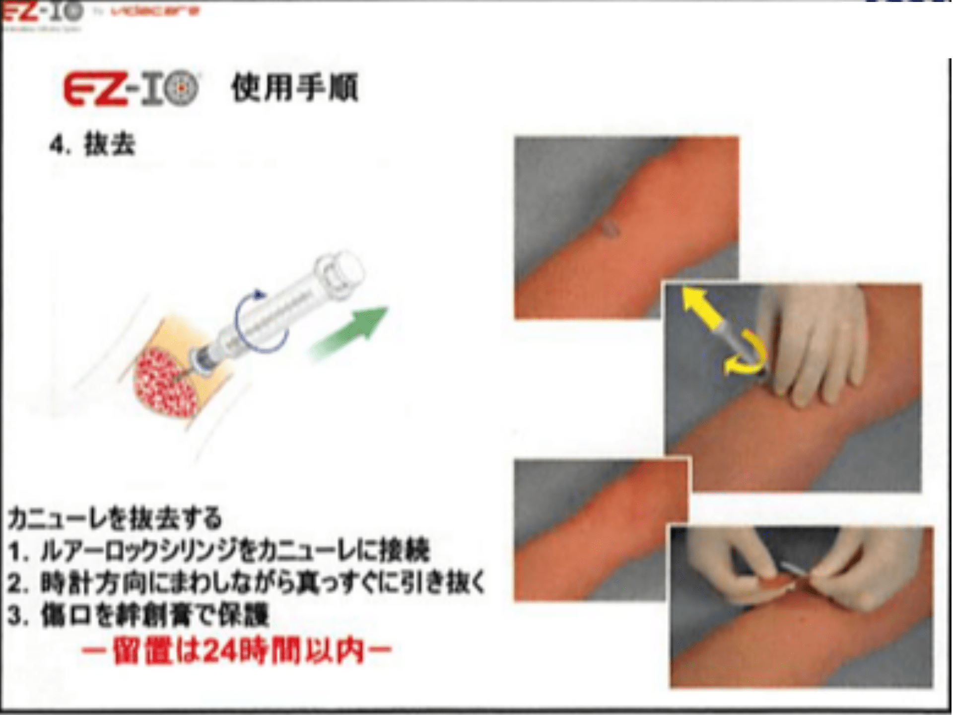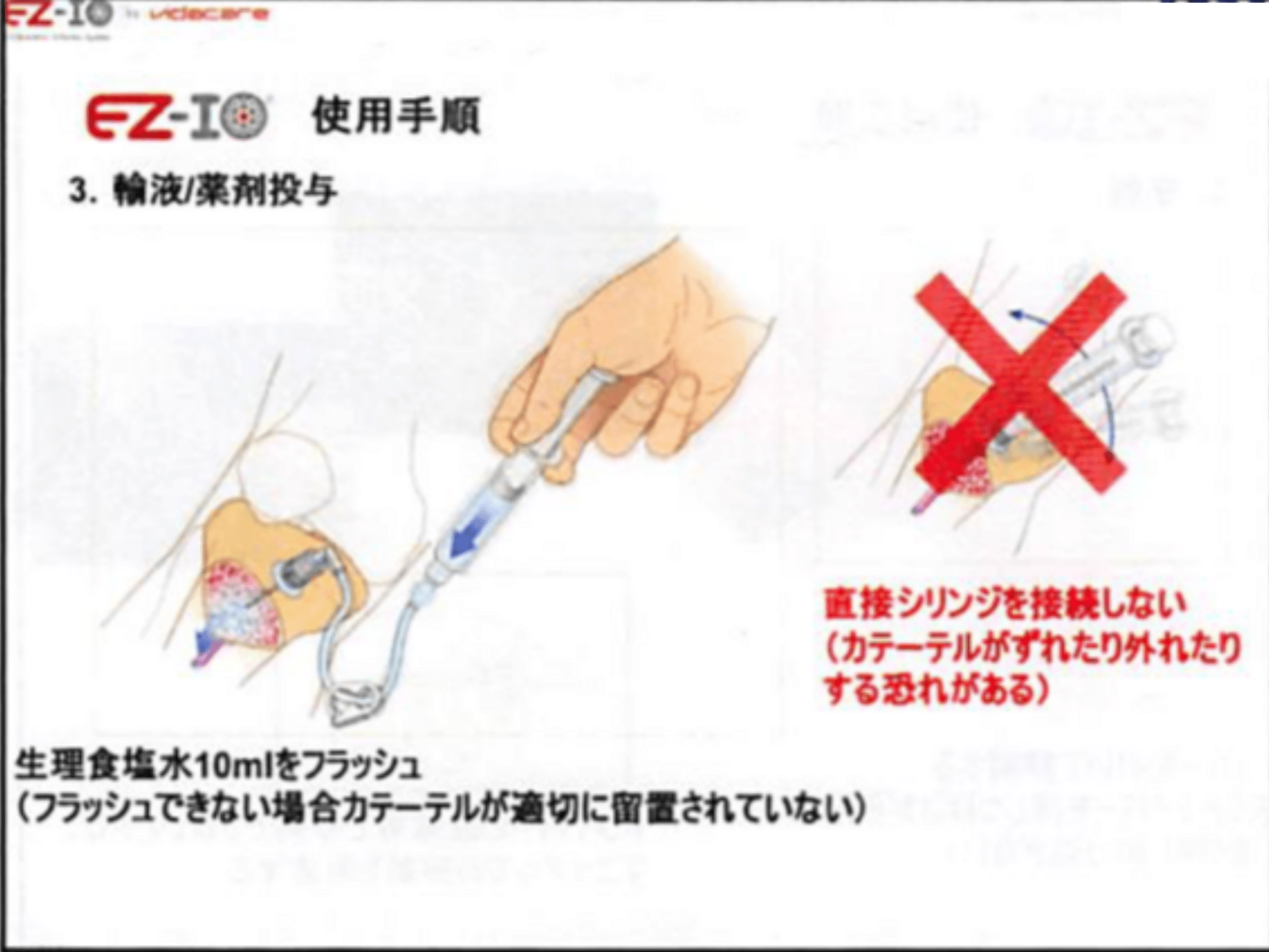 #12. 上腕骨近位部は使いやすい 高流量(上腕骨5L/hour 脛骨1L/hour) 薬剤は輸液注入後3秒で心臓に到達する CVCとほぼ同じ性能がある 外傷で骨盤骨折合併も疑わしい時