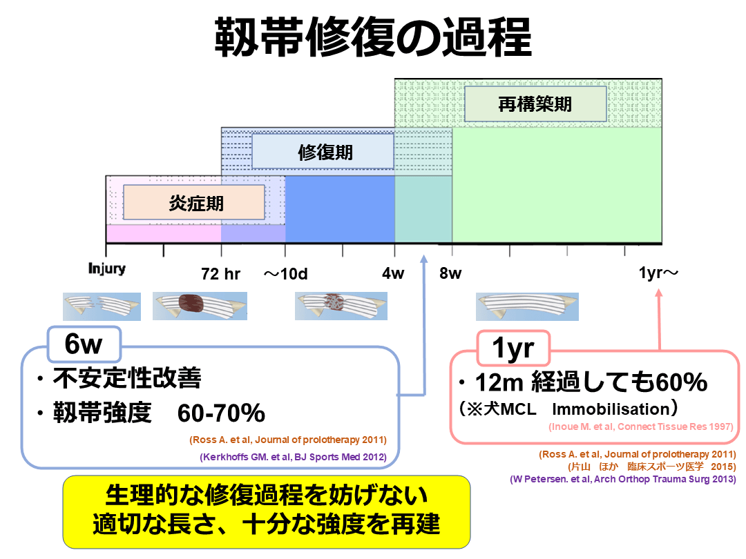 #8. 靱帯修復の過程 72 hr ~10d 炎症期 修復期 4w 8w 1yr~ 再構築期 (Ross A. et al, Journal of prolotherapy 2011)
