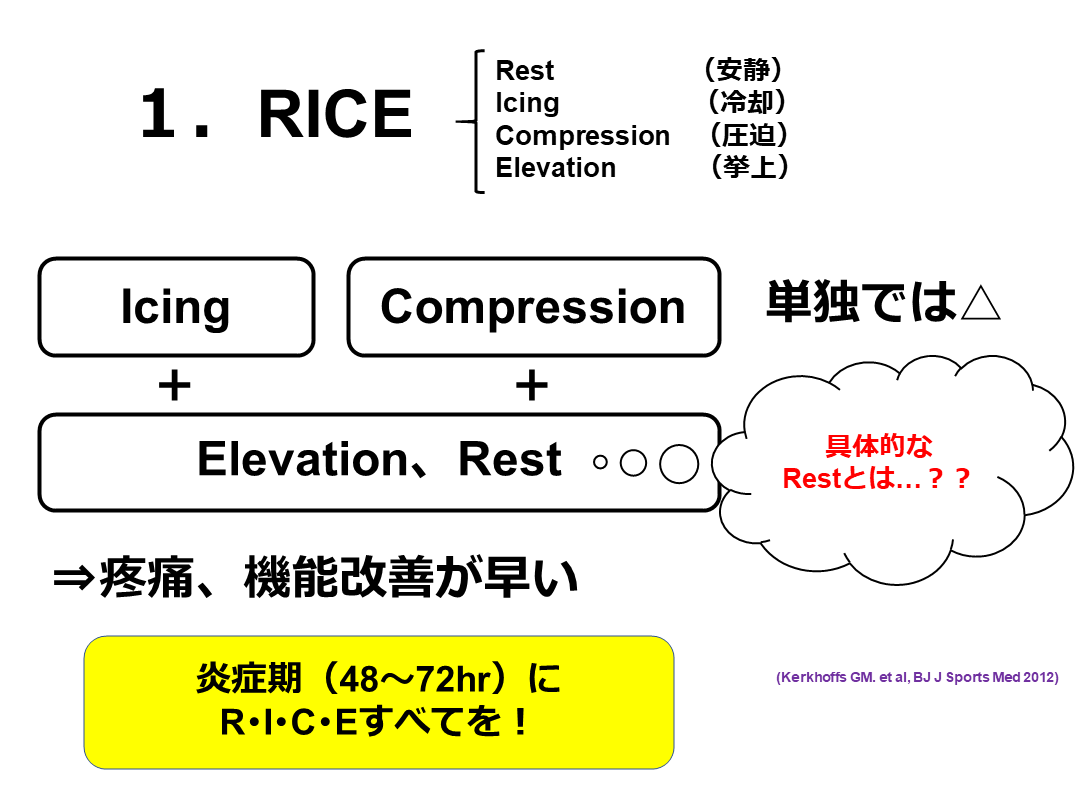 #11. 1.RICE (Kerkhoffs GM. et al, BJ J Sports Med 2012) Rest (安静)