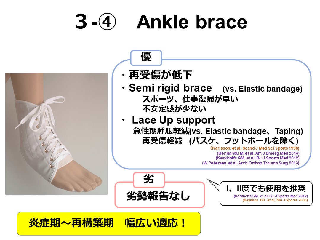 #17. 3-④ Ankle brace 劣勢報告なし 劣 優 I、II度でも使用を推奨