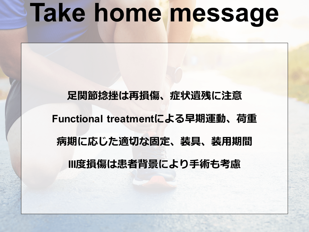 #21. Take home message 足関節捻挫は再損傷、症状遺残に注意