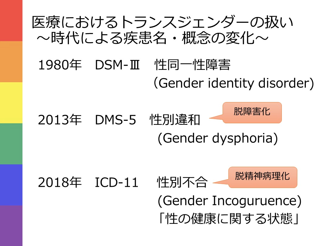 医療におけるトランスジェンダーの扱い ~時代による疾患名・概念の変化~ 1980年 DSM-Ⅲ 性同一性障害