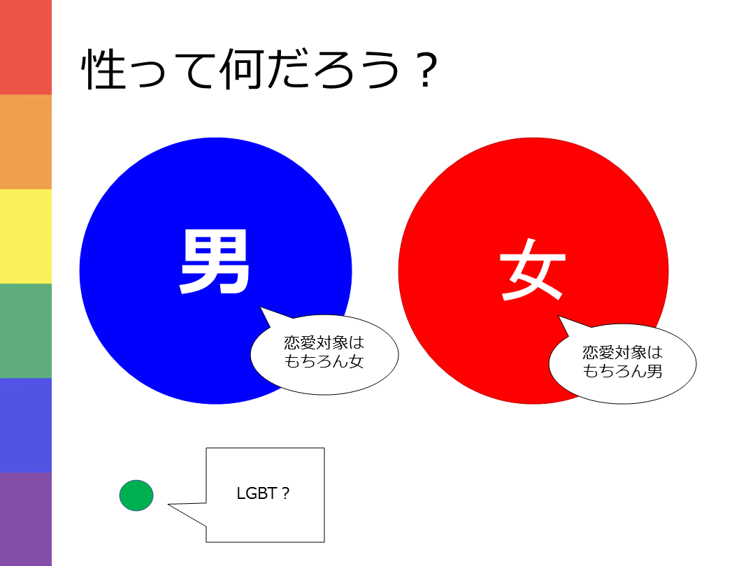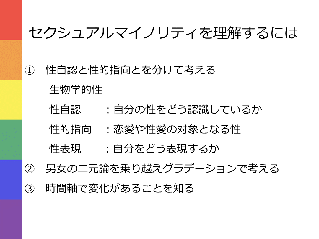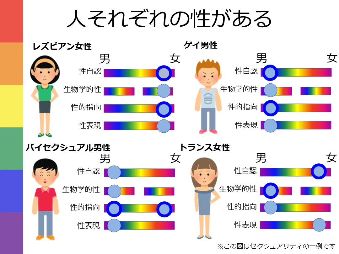 性の多様性の基礎知識ー目標 セクシュアリティは男女の二元論ではなくグラデーションであり、個人で異なることを理解する