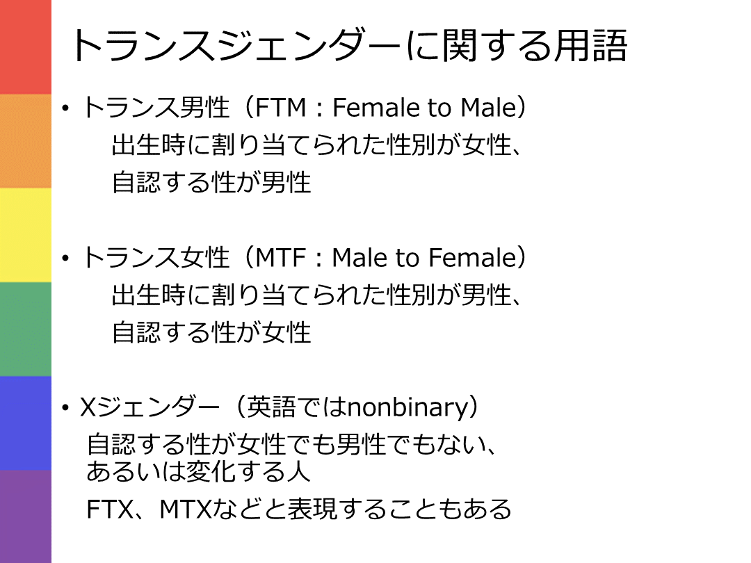 トランスジェンダーに関する用語 トランス男性(FTM:Female to Male)