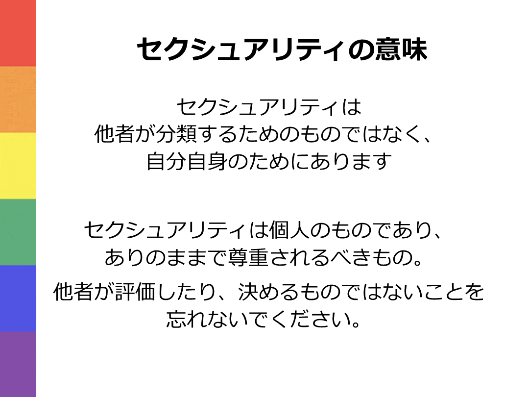 セクシュアリティは個人のものであり、ありのままで尊重されるべきもの。