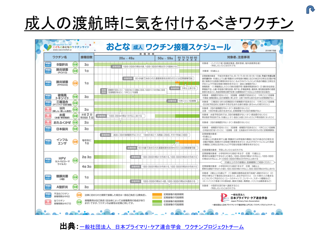 #102. 成人の渡航時に気を付けるべきワクチン 出典:一般社団法人 日本プライマリ・ケア連合学会 ワクチンプロジェクトチーム